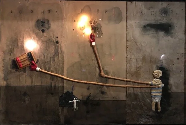 Lynch est surtout connu chez le grand public pour ses films. Mais dès le début il a fait des œuvres plastiques et il a continué cette pratique toute sa vie. Lynch a refusé d’interpréter son œuvre avec des mots. Il utilise bien sûr des mots dans son œuvre mais c’est à cause de leur forme qu’il trouve ces mots « excitants et que quelque chose peut y naître[1] ». Un exemple d’un texte dans une peinture : « Because of wayward activity based upon unproductive thinking, Bob meets Mister Redman – Oh no[2]. »